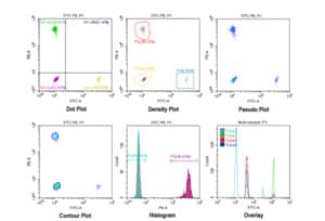 高達7個對數的坐標軸範圍內資料的完美顯示。您可以通過坐標軸範圍的人為設置, 查看重要資料的存在與否。堪稱流式細胞儀使用者手中的“淘金”工具。 |